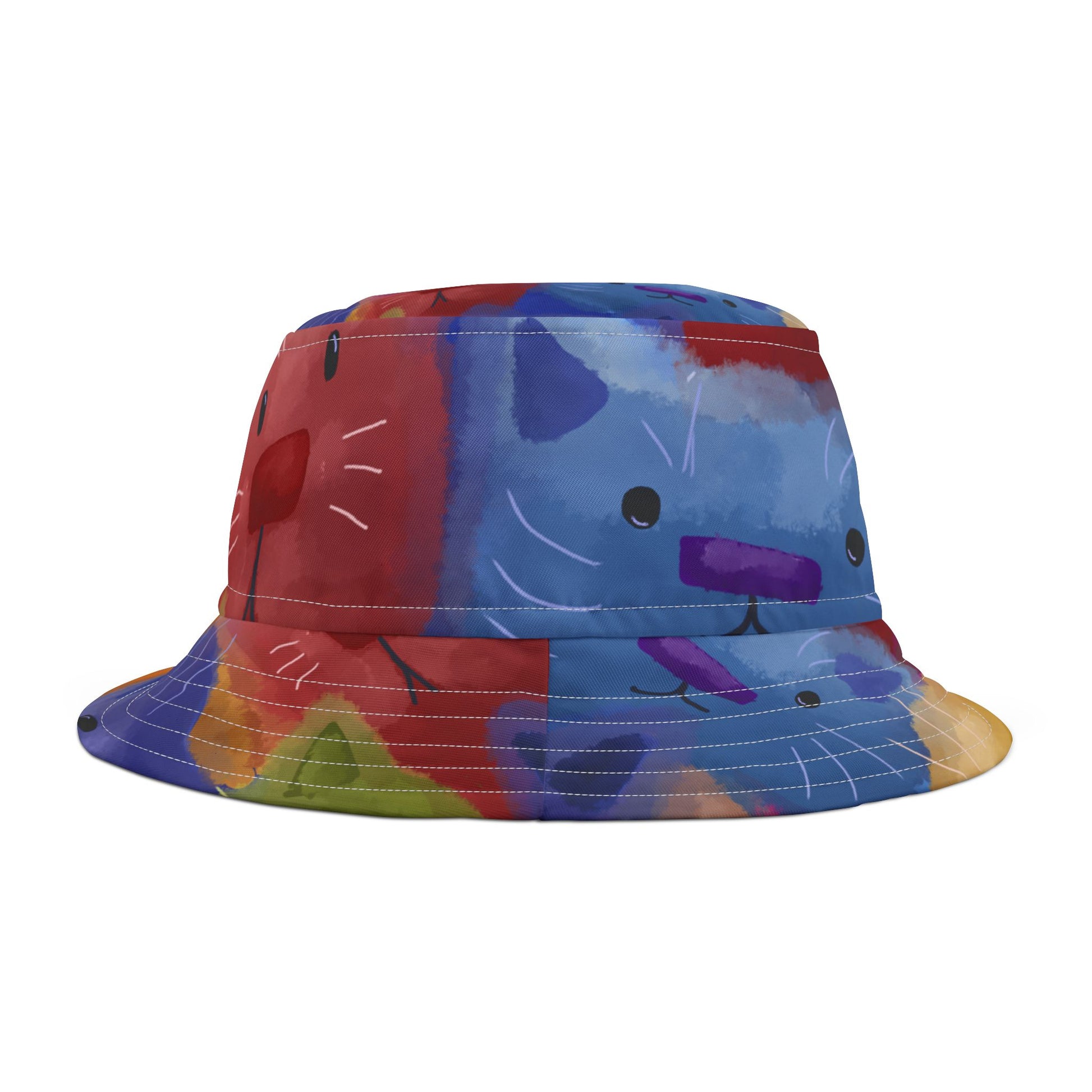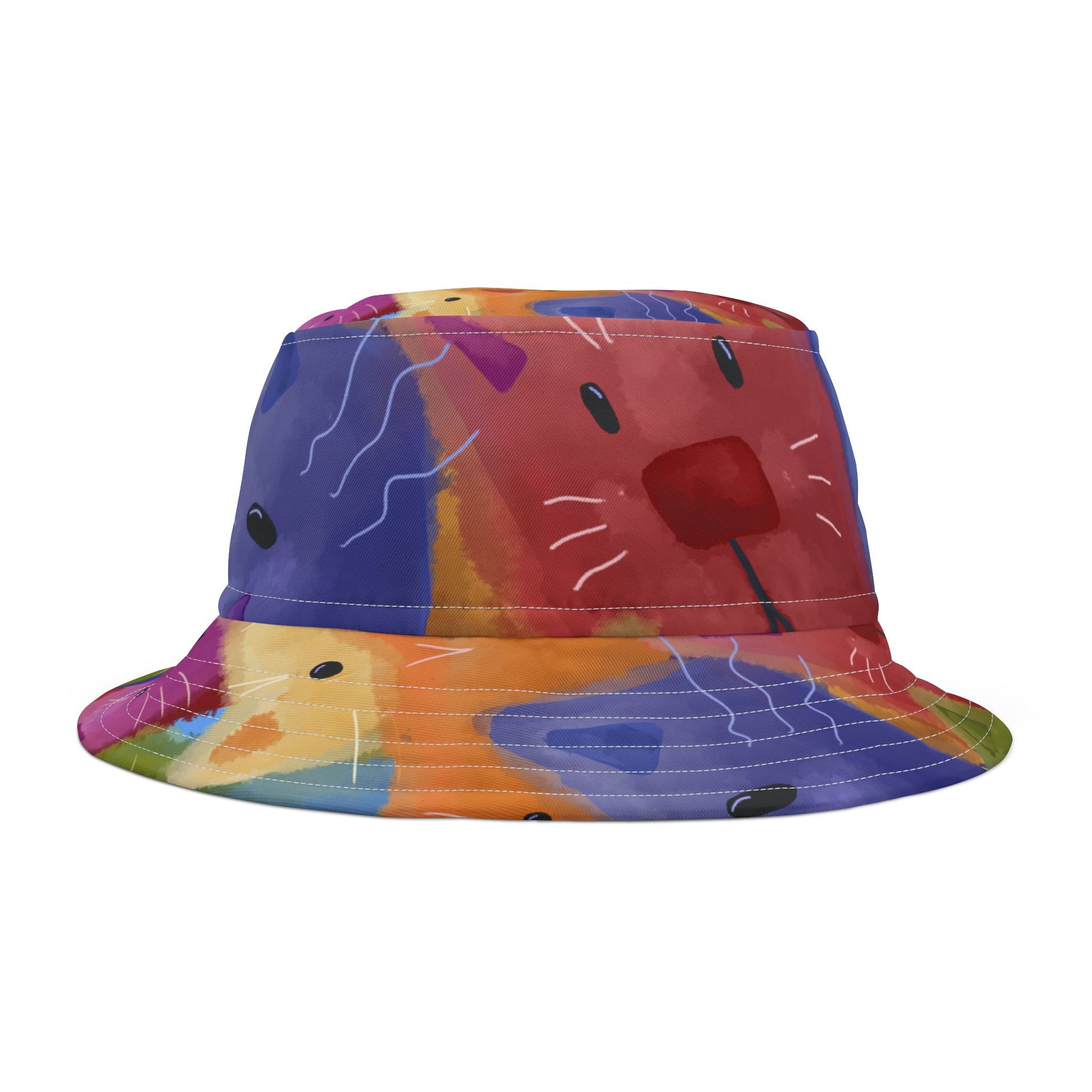 Colorful Cat Abstract Bucket Hat - Vibrant Art Design for Summer Fun