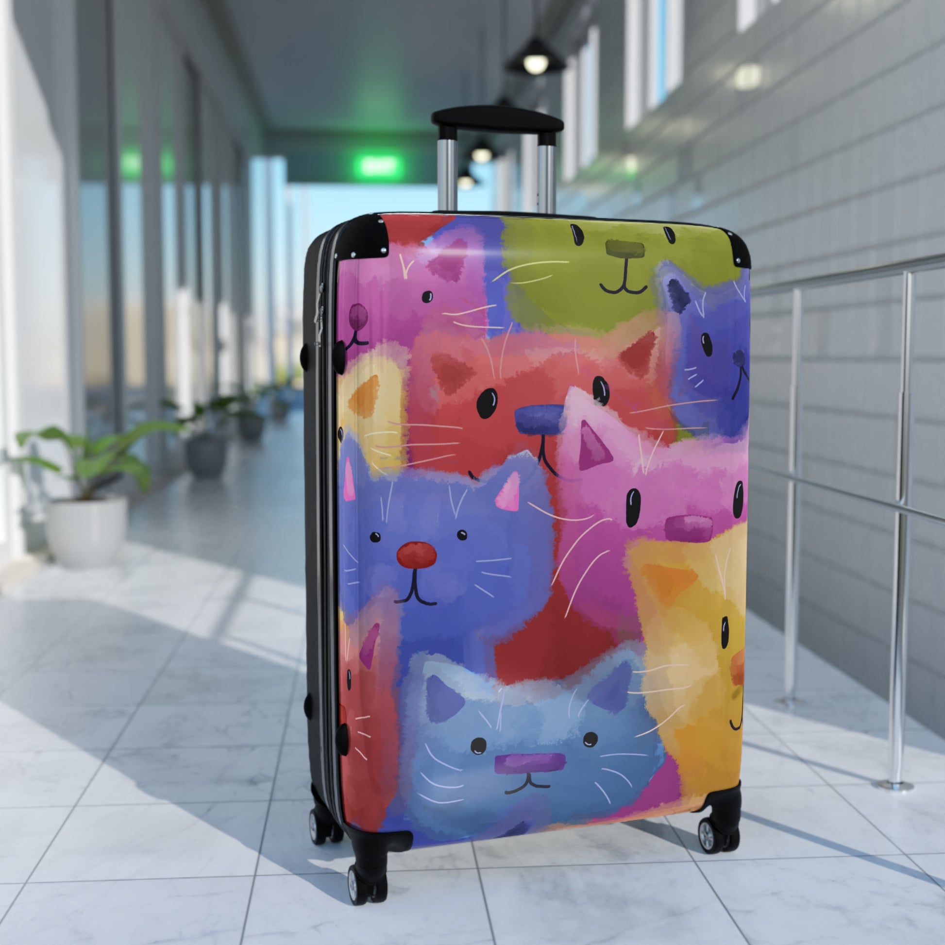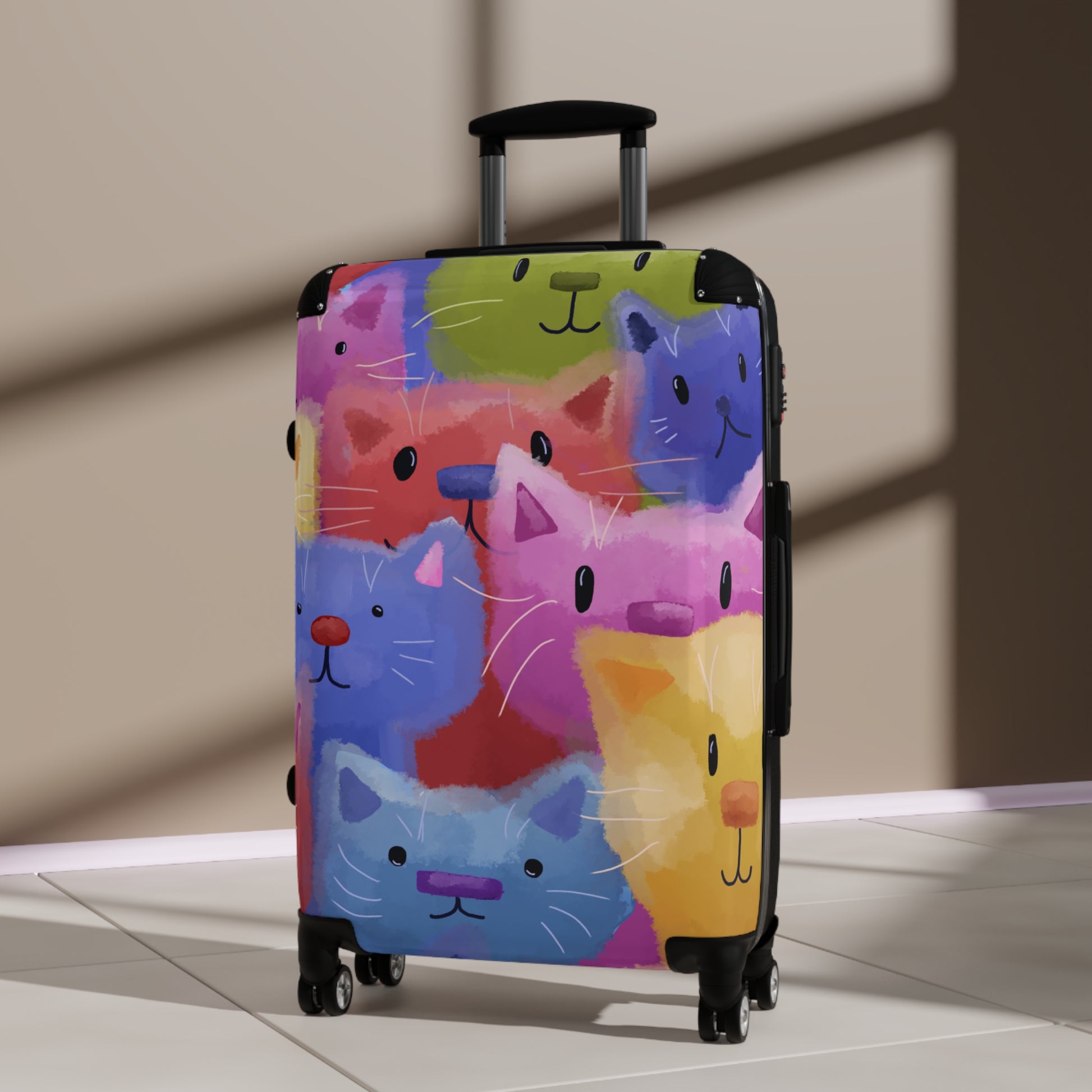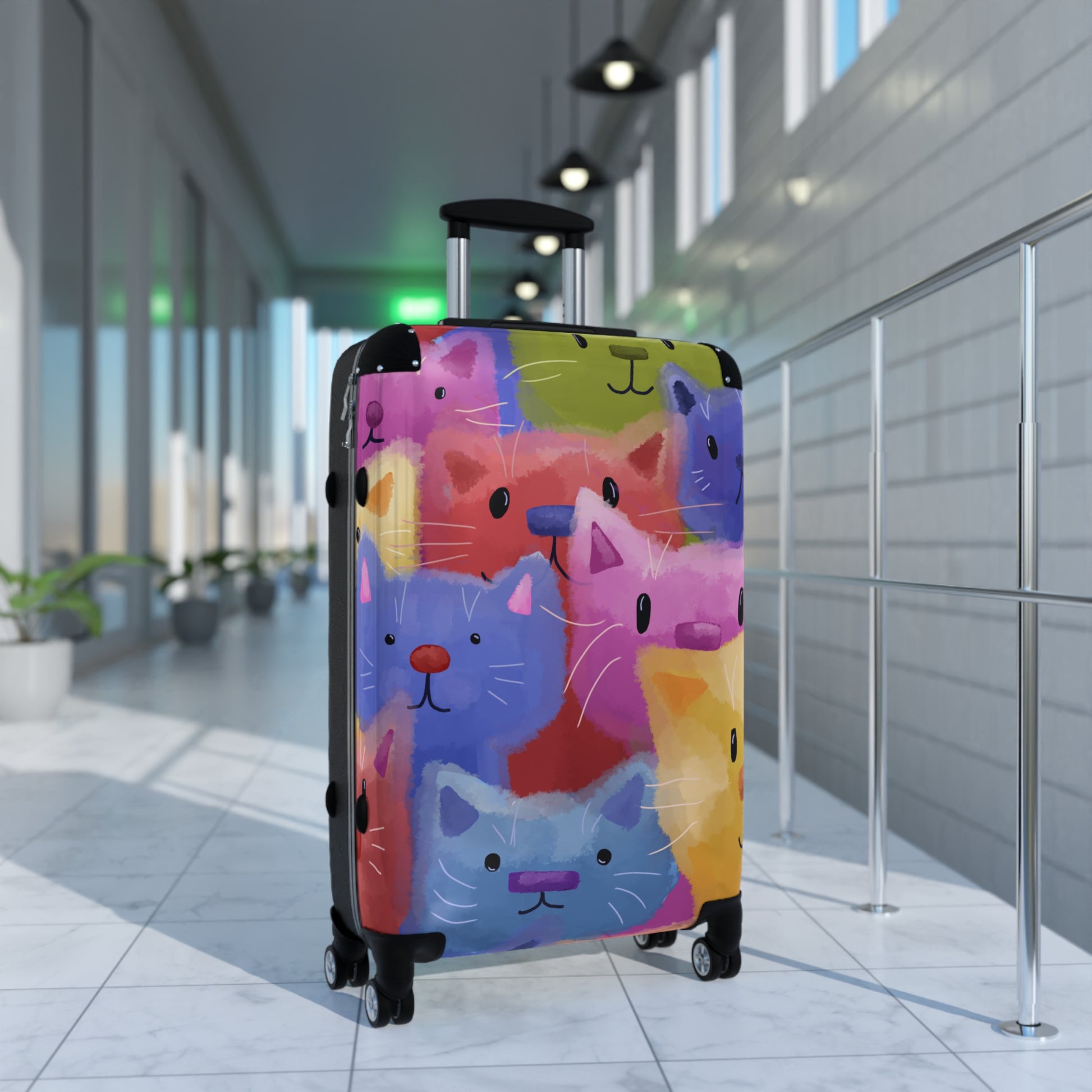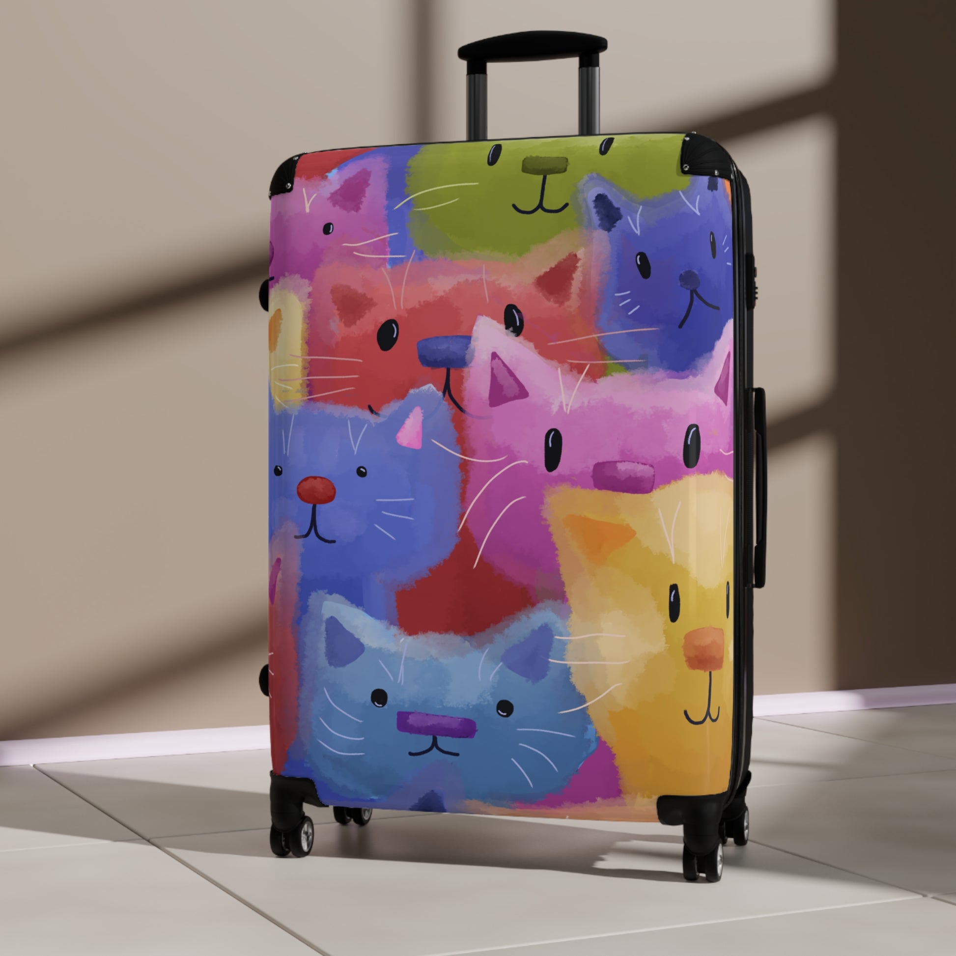 Colorful Rainbow Cat Suitcase - Perfect for Pet Lovers and Travel Enthusiasts