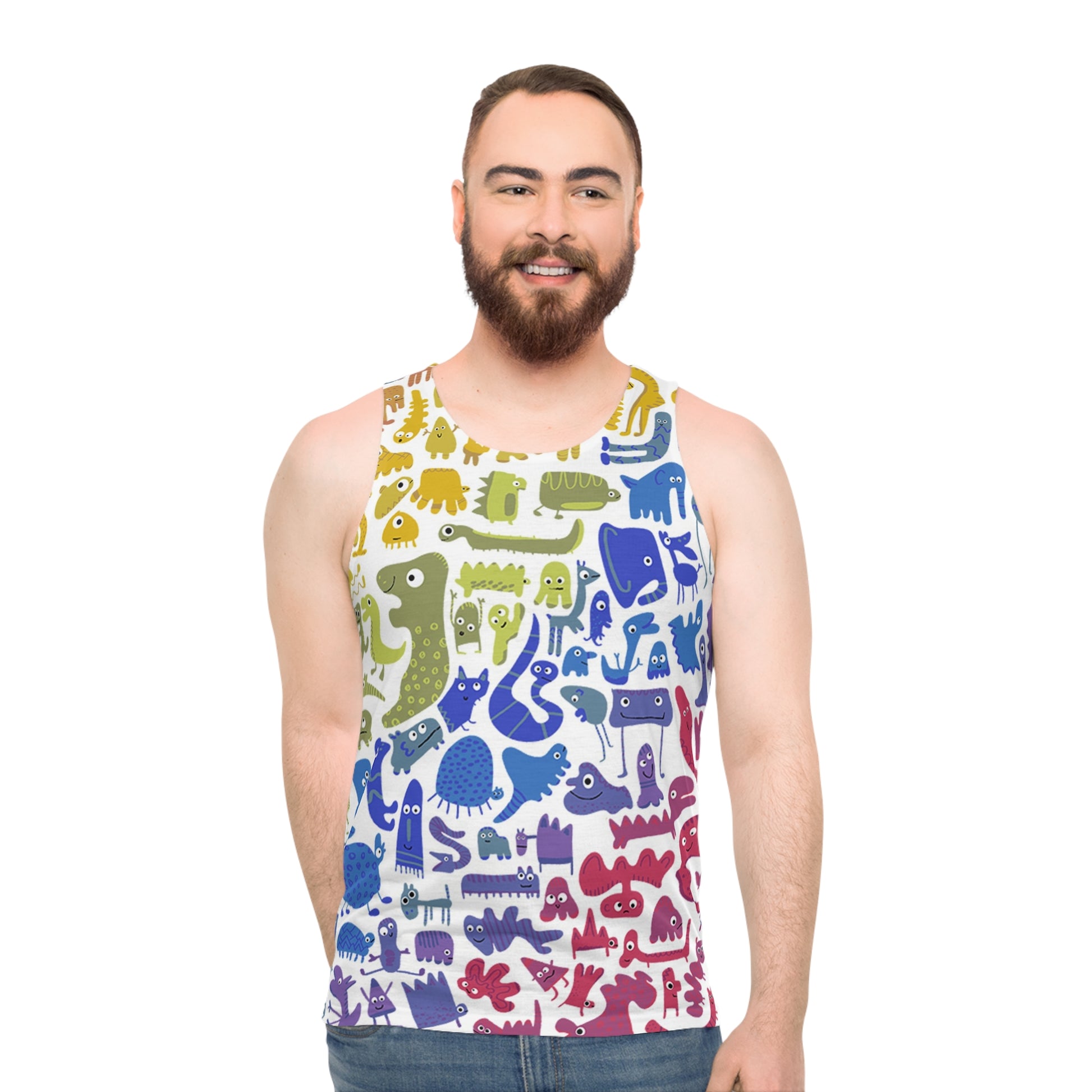 Colorful Rainbow Pride Monster Unisex Tank Top, Human-made design, beat the heat this summer!