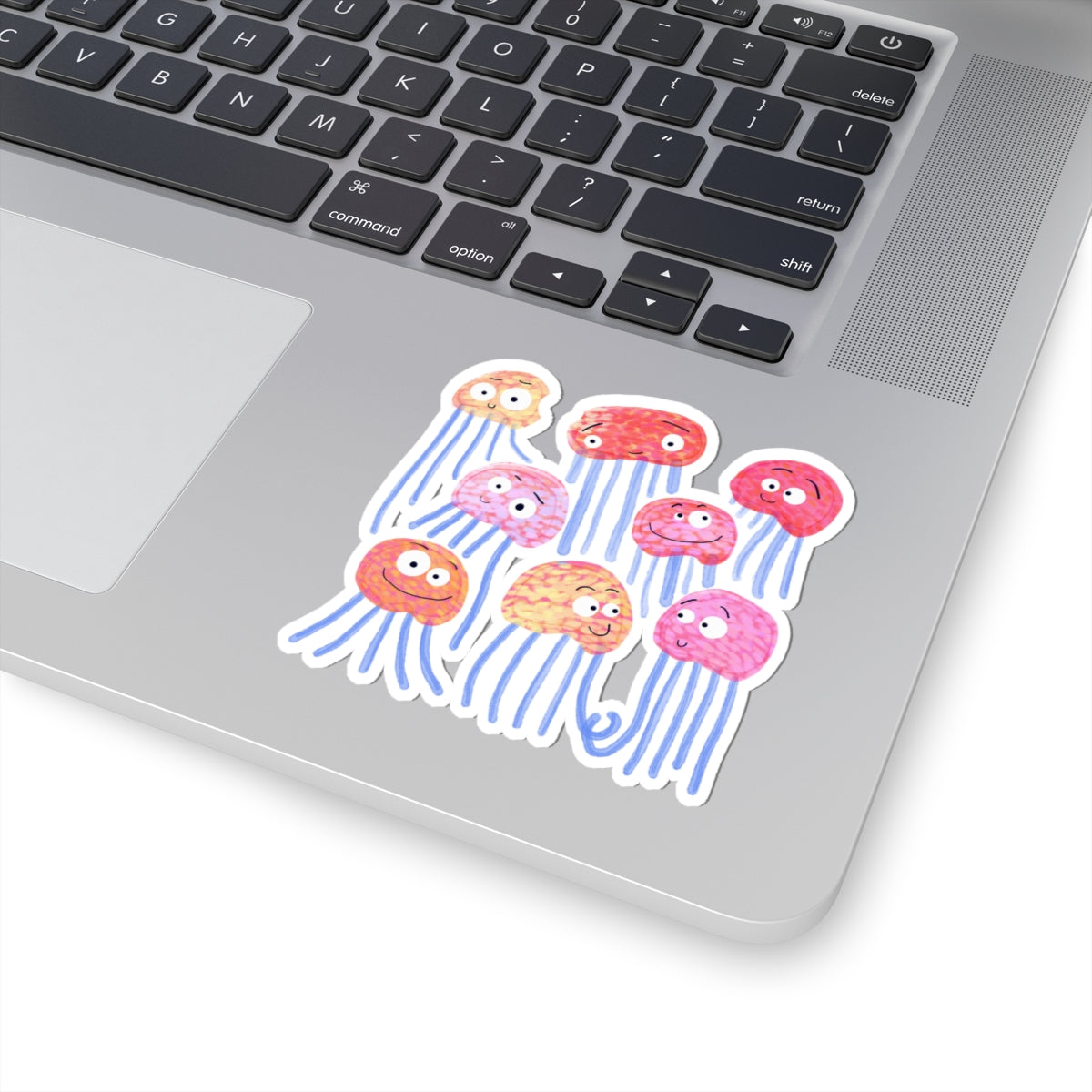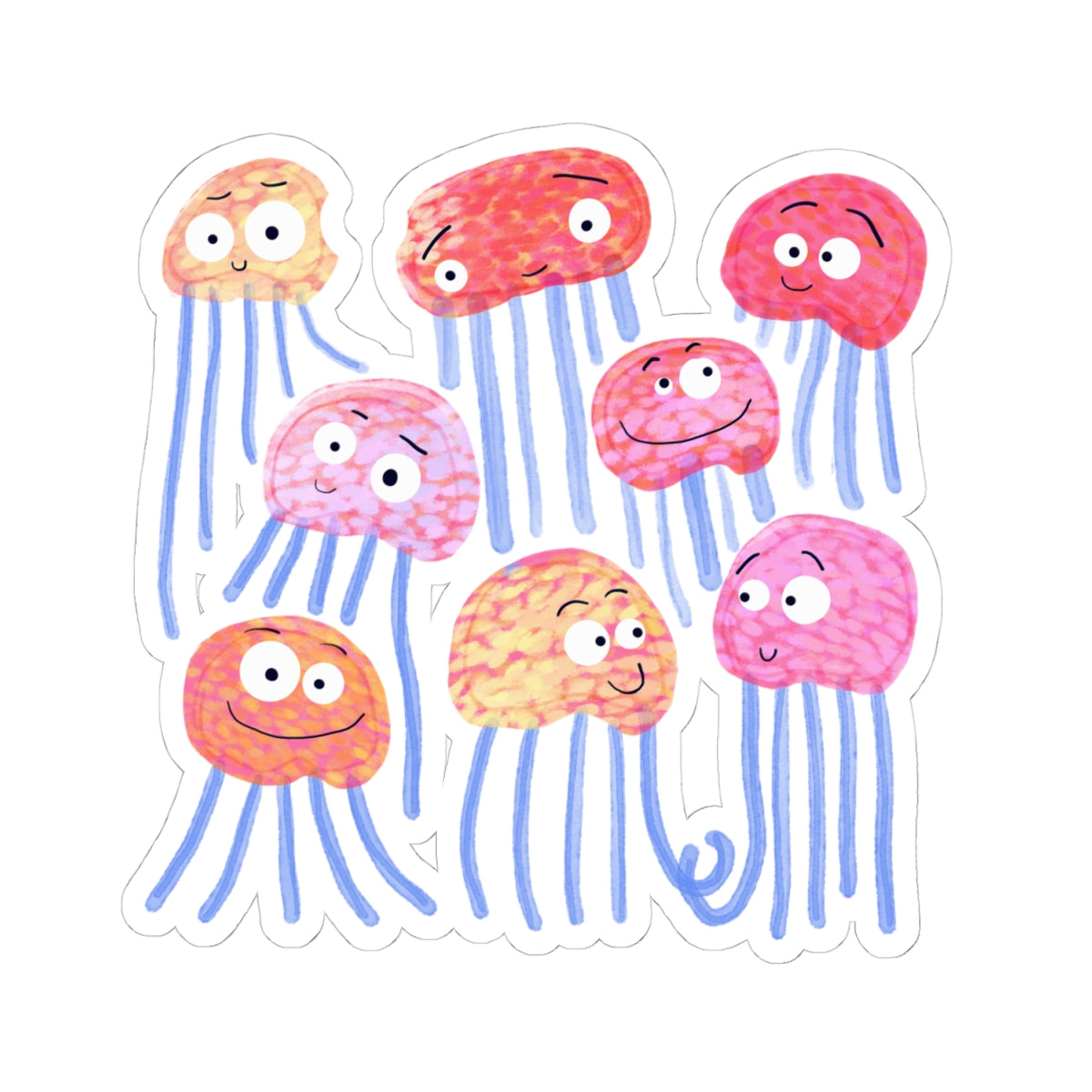 I love these jellyfish! Originally, I created these for my children's book portfolio, but couldn't resist making them into something more. Add some fun and personality to your belongings with this Sticker! Perfect for personalizing laptops, journals, or any smooth surface, these stickers make your creativity shine. Ideal for anyone who loves unique art, they make delightful gifts for friends or family members who enjoy decorating their space.