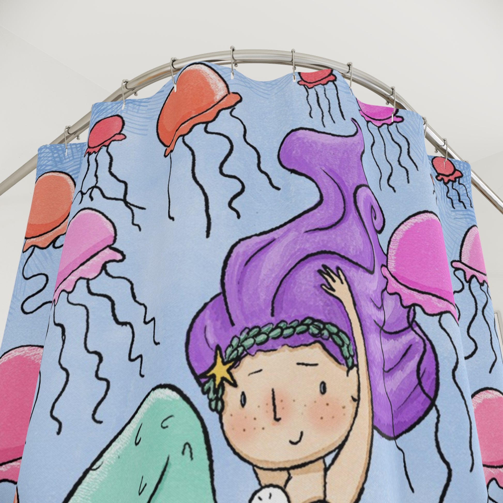Transform your bathroom into an underwater oasis with this whimsical shower curtain! Featuring a captivating mermaid surrounded by vibrant jellyfish, this product brings a splash of color and creativity to your daily routine. Perfect for anyone who loves marine life or wishes to add a playful touch to their home decor. Ideal for beach lovers, kids' bathrooms, or anyone who enjoys a fun and unique aesthetic. This shower curtain is perfect for summer refreshes, birthdays, or housewarming gifts. Let it inspire tranquility and joy every time you step in!