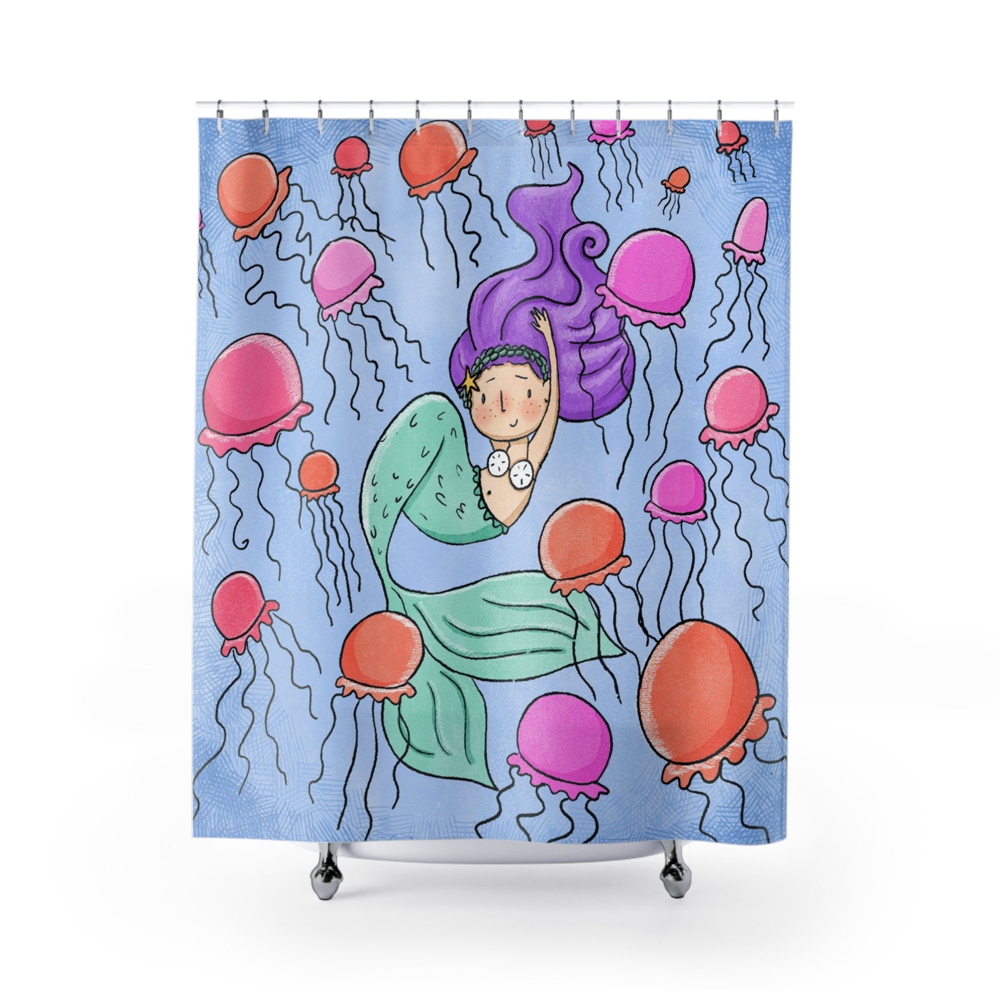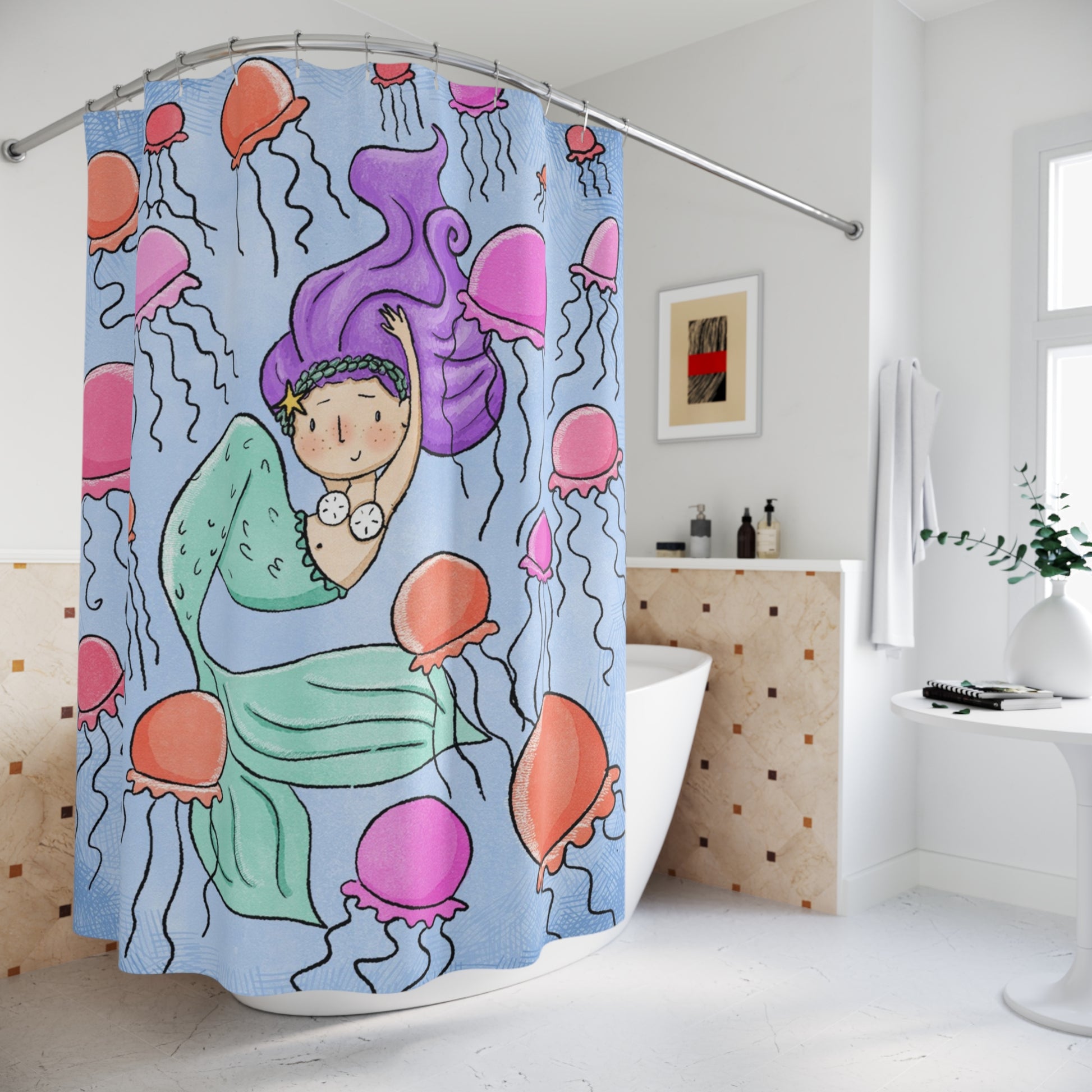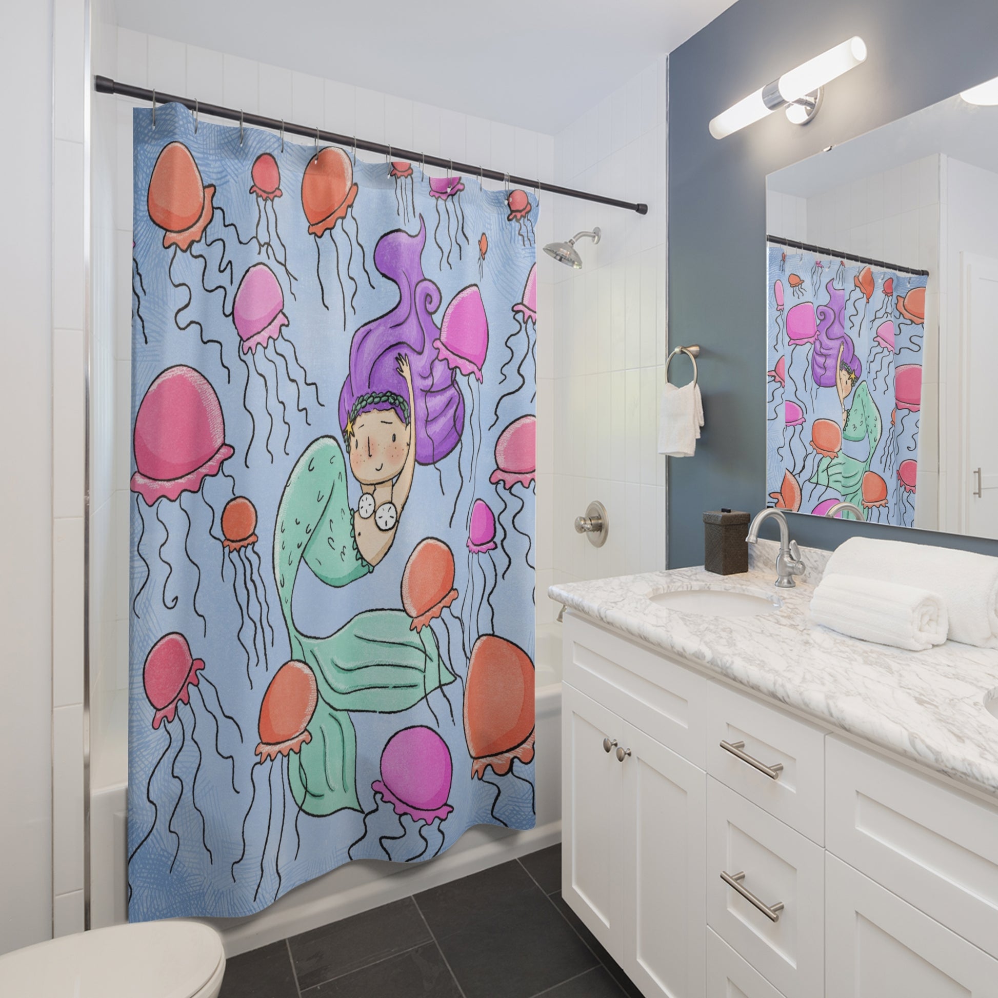 Mermaid and Jellyfish Shower Curtain – Nautical Decor for a Beachy Bathroom